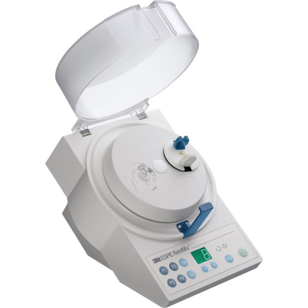Universalmischgerät für Zahnfüllungsmaterialien und Zemente in Kapseln. Noch mehr Komfort.Angenehm leises BetriebsgeräuschEinfache HandhabungFrei programmierbare FolientastaturDer RotoMix ist das einzige Mischgerät mit Rotationsmischung und Zentrifugenbewegung. Das Rotationsverfahren führt zu einer homogenen Mischung der Paste. Durch die Möglichkeit, das Material zu zentrifugieren, werden die Luftblasen reduziert. Für 3M Produkte ergibt sich eine besonders einfache Bedienung durch die in der Folientastatur gespeicherten Mischzeiten. Auf Wunsch abschaltbare Zentrifugenbewegung, z. B. zum Mischen von Amalgam Stück Mischgerät 230 V Technische Daten Abmessung (B x H x T): 180 x 210 x 246 mm Gewicht: 4 kg Netzspannnung: 230 V / 50 Hz Leistungsaufnahme: 390 VA