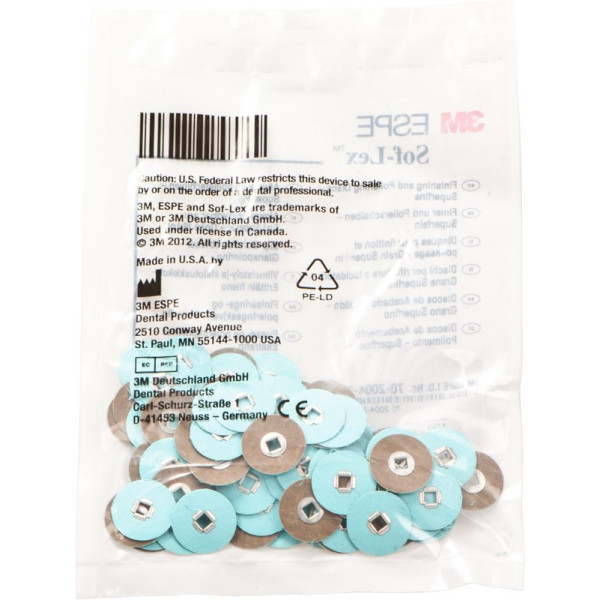 Sof-Lex (XT) – Introkit 120 Polierscheiben Ø 9,5 mm (sehr fein, fein, mittel, grob), 120 Polierscheiben Ø 12,7 mm (sehr fein, fein, mittel, grob), 1 Mandrell RA für Winkelstück.