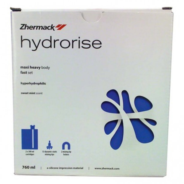 Das feine Minzaroma empfinden Patienten bei der Abdrucknahme als besonders angenehm und daher ist es auch besonders für Würgereiz- patienten geeignet. Die geschmeidige Anfangskonsistenz und das sehr gute Fließverhalten zeichen das Hydrorise Heavy Body Fast aus. Sehr geschmeidige Anfangskonsistenz Sehr gutes Fließverhalten Hohe Endhärte Leichtes Pfefferminzaroma Schnellabbindend Packung 2 x 380 ml Doppelkartusche