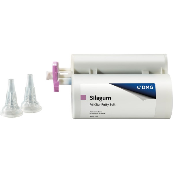 Vorabformmaterial auf der Basis von A-Silikonen. Anwendungsgebiete Kronen- und Brückenabformungen, Inlay- und Onlayabformungen. VorteileLeicht dosierbarAusgezeichnetes RückstellvermögenLeichte Entnahme aus dem MundAusgezeichnet knetbarSehr gute DimensionsstabilitätBesonders geeignet für die Zweiphasen-Abformung mit Silagum-Light/Light-Fast Vorteilspackung 5 x 380 ml Kartuschen Soft, 50 MixStar-Tips