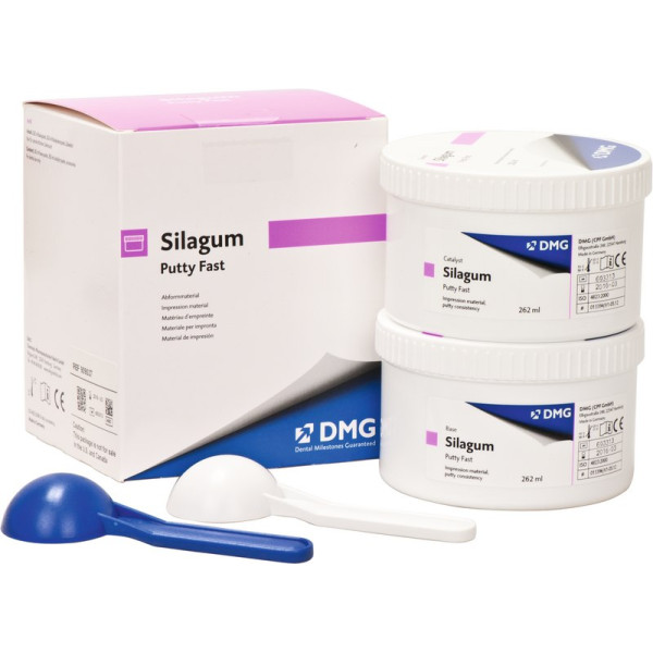 Vorabformmaterial auf der Basis von A-Silikonen. Anwendungsgebiete Kronen- und Brückenabformungen, Inlay- und Onlayabformungen. VorteileLeicht dosierbarAusgezeichnetes RückstellvermögenLeichte Entnahme aus dem MundAusgezeichnet knetbarSehr gute DimensionsstabilitätBesonders geeignet für die Zweiphasen-Abformung mit Silagum-Light/Light-Fast Vorteilspackung 4 x 262 ml Basispaste, 4 x 262 ml Katalysatorpaste, Fast