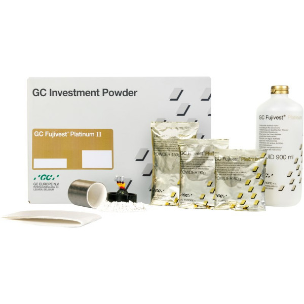 Mit der GC Fujivest® Platinum II hat GC einen weiteren Meilenstein in der Kronen-und Brücken-Technik erreicht. Mit der längeren Verarbeitungszeit und optimierten Fließfähigkeit, wird das Einbetten komplexer Fälle einfacher als jemals zuvor. Mit der höheren Expansionsrate ist die Fujivest® Platinum II noch vielseitiger. Die GC Fujivest® Platinum II wurde speziell für Edelmetall-/ Halbedelmetall und Palladium-Basislegierungen entwickelt und ersetzt die bewährte GC Fujivest® Platinum.Speziell entwickelt für Hochpräzisionsgüsse von Edelmetall-, Halbedelmetall und Pd-Basis-LegierungenSchnell- oder StufenaufheizverfahrenErmöglicht eine optimale Passform – selbst bei Implantatsuprastrukturen und großen BrückenspannweitenLeicht steuerbar bei erweitertem ExpansionsbereichLängere Verarbeitungszeit, bessere FließfähigkeitSehr leicht entnehmbar, bei reduziertem Risiko der Beschädigung von GüssenGlatte Oberflächen – exakte Wiedergabe aller feinen Details Packung 40 x 150 g Beutel