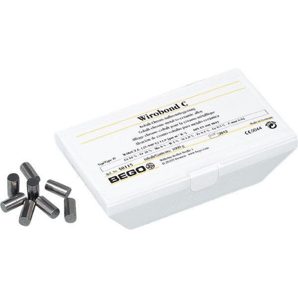 Nickel- und berylliumfrei einfache Verarbeitung durch sichere Gießzeitpunkterkennung Kohlenstofffreie Zusammensetzung – besonders gut für das Laserschweißen geeignet Das Element Cer sorgt für eine hohe Verbundfestigkeit mit der Keramik – Minimierung des Risikos von späteren Abplatzungen Geringe Wärmeleitfähigkeit – Schutz der Pulpa und hoher Tragekomfort beim Patienten Biokompatibel und korrosionsbeständig durch fest haftende Passivschicht Chemische Zusammensetzung: Co 63,3 · Cr 24,8 · W 5,3 · Mo 5,1 · Si 1,0 · Ce Packung 250 g Legierung