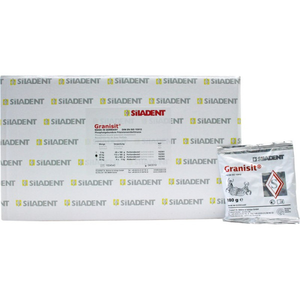 Seit mehr als 15 Jahren als die klassische SILADENT-Modellguss-Einbettmasse bewährt für präzise Passungen und glatte Oberflächen. Phosphatgebundene graphitfreie Präzisionseinbettmasse. Für alle Edelmetall-, edelmetallreduzierten und Chrom-Kobalt-Legierungen geeignet.Expansion ist exakt über die Liquidkonzentration einstellbarExpansionssteuerung über Liquid Typ 100, bei der Doppelkronentechnik in Chrom-Kobalt Liquid Typ 140Hohe Kantenstabilität und ZeichnungsgenauigkeitSehr glatte Gussoberflächen und hervorragende Detailtreue Karton 112 x 180 g Beutel