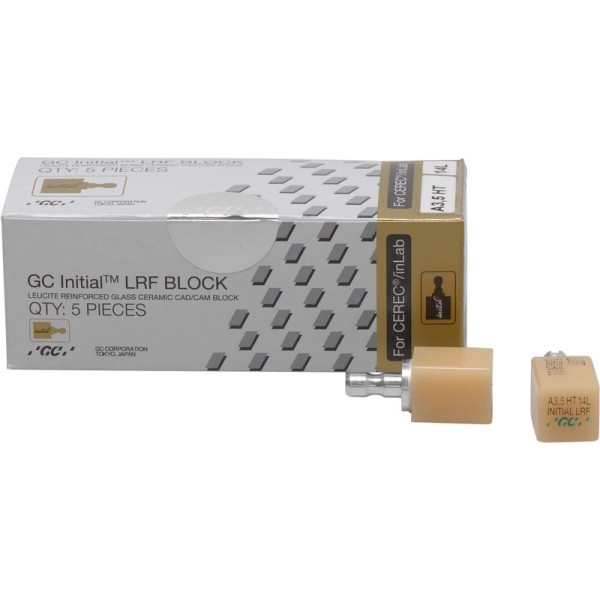 Der GC Initial™ LRF BLOCK ist ein leuzitverstärkter Feldspat-CAD/CAM-Block, in je fünf Hoch- und Niedrig-Transparenten V-Farben. Er eignet sich für indirekte vollkeramische, vollanatomische Restaurationen. Ganz gleich ob Sie einfach nur polieren oder mit der speziellen Glasurpaste glasieren, GC Initial™ LRF bietet Ihnen die höchste Bruchstabilität & Biegefestigkeit in seiner Klasse. Packung 5 Blöcke Größe 14L, A3,5 LT