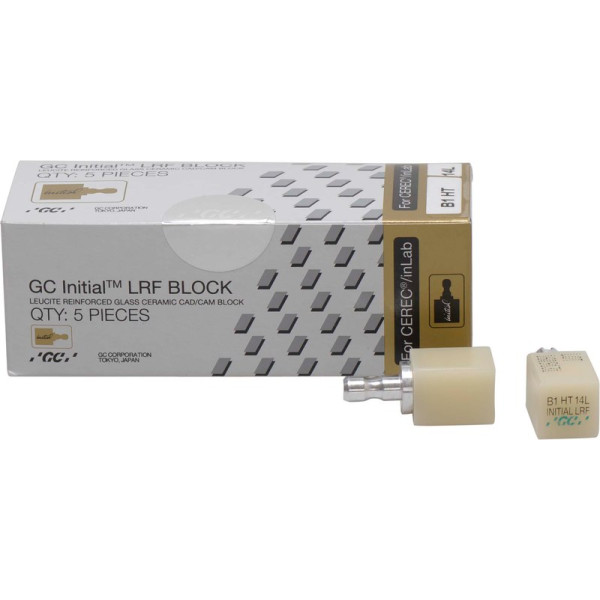 Der GC Initial™ LRF BLOCK ist ein leuzitverstärkter Feldspat-CAD/CAM-Block, in je fünf Hoch- und Niedrig-Transparenten V-Farben. Er eignet sich für indirekte vollkeramische, vollanatomische Restaurationen. Ganz gleich ob Sie einfach nur polieren oder mit der speziellen Glasurpaste glasieren, GC Initial™ LRF bietet Ihnen die höchste Bruchstabilität & Biegefestigkeit in seiner Klasse. Packung 5 Blöcke Größe 14L, B1 HT