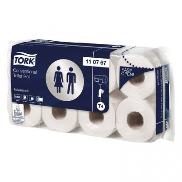 TORK® Kleinrollen Toilettenpapier – 2-lagig. Bieten Sie Ihren Gästen den Komfort, den sie von zu Hause gewöhnt sind: mit dem Tork Kleinrollen Toilettenpapier. Dieses Toilettenpapier zeichnet sich in Waschräumen mit niedriger Besucherfrequenz durch ein gutes Preis-Leistungs-Verhältnis aus. Kosteneffizienz bei zuverlässiger, grundlegender Qualität Fühlt sich durch die Prägung voluminöser an Packung 8 x 8 Rollen