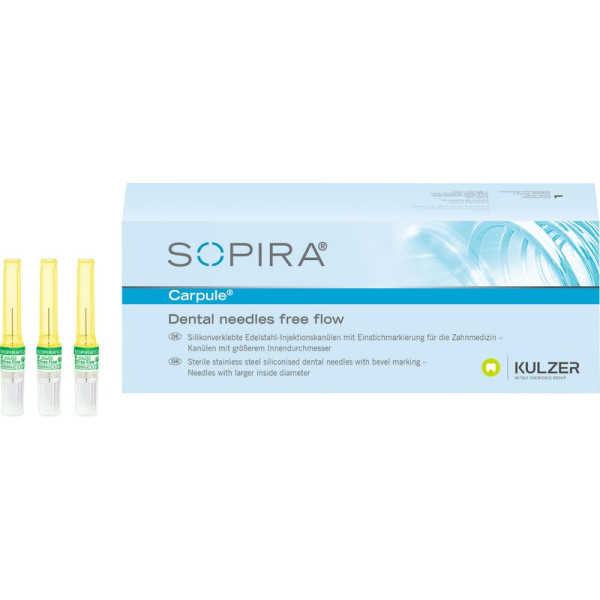 SOPIRA® Carpule® Free Flow Kanülen - Packung 100 Stück 30G, 16 mm, kurzer Anschliff, grün, Typ Injektion Periapikalisch - 660534