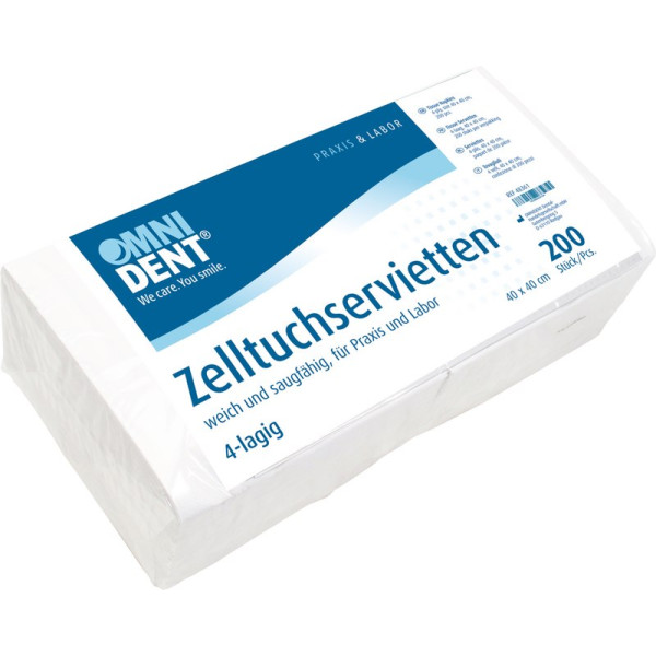 Zelltuchservietten - Packung 200 Stück weiß, 40 x 40 cm, 4-lagig - 48361