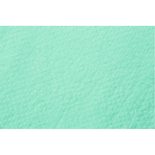 Tissue 26 g / m + polietilén. 1 helyen extra erős (26g / m), abszorbens szövetet készült tiszta cellulóz és 1 lap polietilén fólia. Domborított és dobott. Latex mentes.Karton 500 Saver lagúnája kék, 25 x 33 cm-es