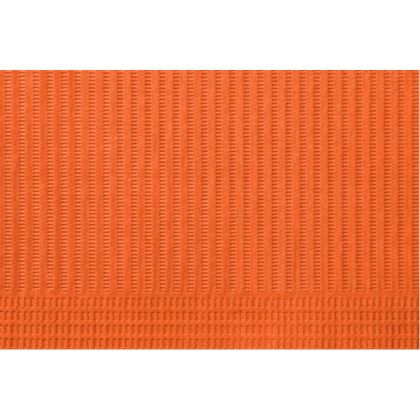 1 Lage Tissue aus reinem Zellstoff von 26g/m² und 1 Lage PE-Folie. Die speziellen Eigenschaften der Materialien bieten höchste Saugfähigkeit und Wasserbeständigkeit, um einen hohen Komfort des Patienten zu garantieren. Geprägt und gefaltet. Latexfrei. Karton 500 Servietten orange, 33 x 45 cm, 2-lagig
