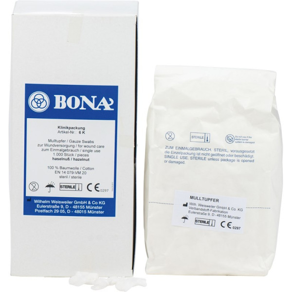 BONA Mulltupfer - Klinikpackung 1.000 Stück Haselnuss - 660