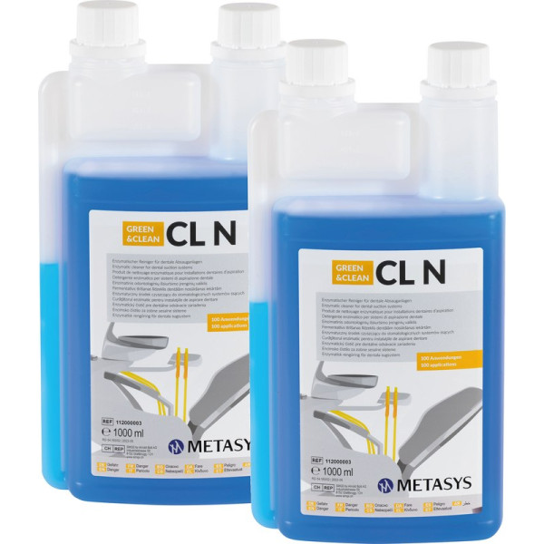 Das Absaugsystem bildet das Herzstück einer Zahnarztpraxis. Ohne funktionierendes System ist ein funktionierender Arbeitsalltag unmöglich. Der richtigen Hygiene des Absaugsystems muss der erforderliche Stellenwert beigemessen werden. Mit GREEN&CLEAN CL N wird ein neues Reinigungskonzentrat zur Optimierung der Hygiene von Absaugsystemen präsentiert. Bessere Entschäumung durch moderne Wirkstoffkombination Ausgezeichnete Eiweißlösekraft durch spezielle Enzymmischung Angenehme Duftnote in den Behandlungsräumen Einfache Dosierung durch Double-Neck-Flasche PH-neutrale Anwenderlösung