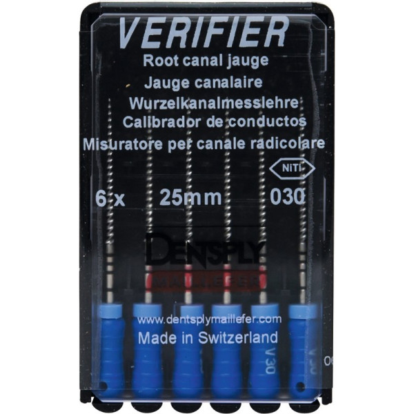 Verifier (Test eszköz) (25 mm) (4 %) (ISO 30), Fogantyú - műanyag ISO 30 autoklávozható, ISO színkódolt, Nikkel-titán, 25 mm, 6 darab