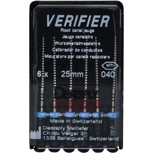 Verifier (Test eszköz) (25 mm) (4 %) (ISO 40), Fogantyú - műanyag ISO 40 autoklávozható, ISO színkódolt, Nikkel-titán, 25 mm, 6 darab