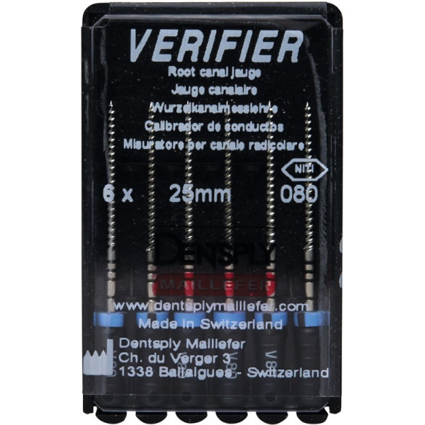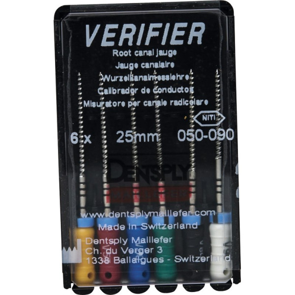 Verifier (Test eszköz) (25 mm) (4 %) (ISO 50-90), Fogantyú - műanyag ISO 50-90 autoklávozható, ISO színkódolt, Nikkel-titán, 25 mm, 6 darab
