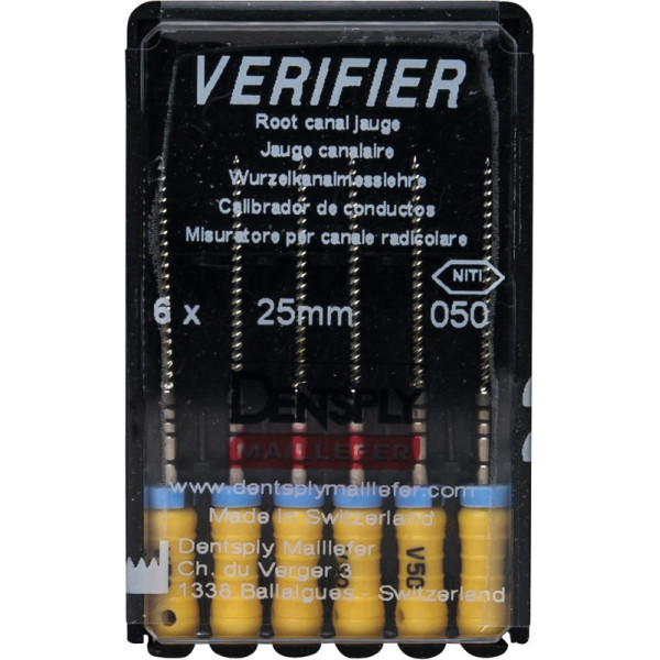 Verifier (Test eszköz) (25 mm) (4 %) (ISO 50), Fogantyú - műanyag ISO 50 autoklávozható, ISO színkódolt, Nikkel-titán, 25 mm, 6 darab