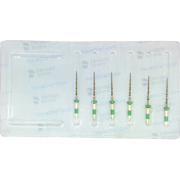 Sicher und souverän durch den Kanal. WaveOne® Gold ist die Weiterentwicklung unseres erfolgreichen reziproken Feilensystems WaveOne®. Die WaveOne® Philosophie bleibt: Einfachheit!1 Feile in den meisten FällenBerücksichtigung der WurzelkanalanatomieReziproke Technik mit guter Instrumentenkontrolle Das neue Level: GOLDGrößere Bandbreite an Kanal-Morphologin.*Erweitertes FeilensortimentVerbesserte Feilen-Flexibilität dank GOLD-TechnologieEffizient: Schneidleistung auf einem neuen Level.*Sicher: 50% widerstandsfähiger gegen zyklische Ermüdung.* * im Vergleich zu WaveOne® Primary Packung 6 Feilen MEDIUM, 21 mm, Taper.06 ISO 035
