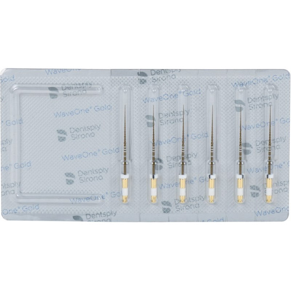 Gestalten Sie Ihren Weg sicher und souverän. Für Einfachheit von Anfang an, beinhaltet die WaveOne® Gold Familie nun eine reziprok rotierende Ein-Feilen Gleitpfadfeile. Berücksichtigt die natürliche Wurzelkanalanatomie Erhöhte Patientensicherheit durch verbesserter Flexibilität und Widerstandskraft gegen zyklische Ermüdung Steril verpackte Feilen und Ein-Patienten-Gebrauch erhalten die Schneidleistung, reduzieren Feilenbruch und schützen vor Kreuzkontamination WaveOne® Gold Glider nutzt die gleichen Motoreinstellungen wie WaveOne® Gold. Das Umprogrammieren des Motors während der Behandlung entfällt somit. WaveOne® Gold Glider ist ausschließlich für den Gebrauch in reziproker Rotation mit kompatiblen Dentsply Sirona Motoren vorgesehen. Packung 6 Glider 31 mm