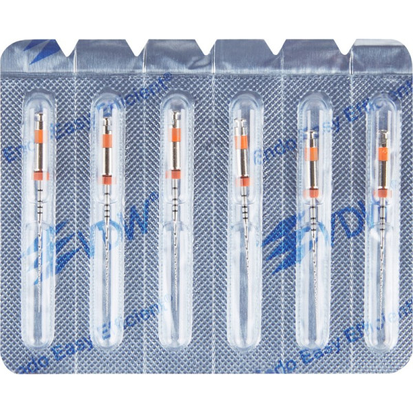 Erste motorbetriebene Gleitpfadfeile in reziproker Bewegung. Sicherer: - Geringere zyklische Ermüdung im Vergleich zu voll rotierenden Gleitpfadfeilen Geringere Gefahr des Feilenbruchs dank der reziproken Bewegung Vorhersehbarer: - Bessere Beachtung der Kanalanatomie im Vergleich zur manuellen Aufbereitung Zeitsparend: - Maschinell betrieben vs. Handaufbereitung; reduzierter Einsatz von Feilen im Vergleich zur manuellen Aufbereitung Packung 6 Feilen 25 mm