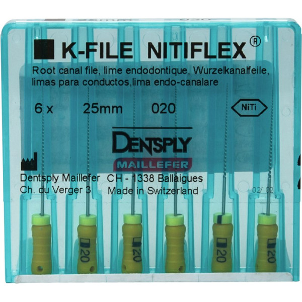 Nitiflex (25 mm) (ISO 15-40), Gyökércsatorna reszelő (kézzel), Fogantyú - műanyag ISO 15-40 ISO színkódolt, Nikkel-titán, 25 mm, 6x1 darab