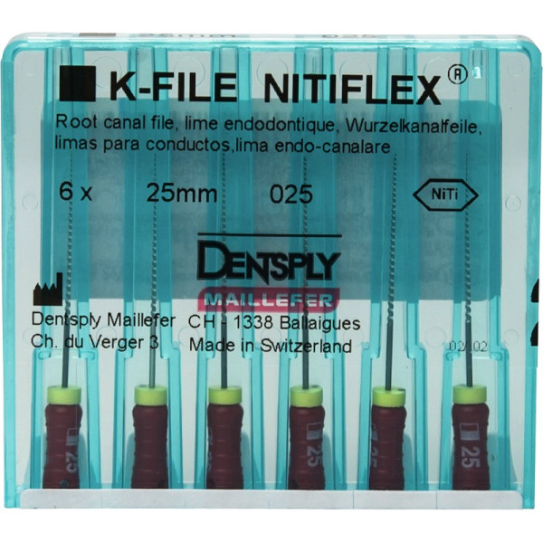 Nitiflex (25 mm) (ISO 25), Gyökércsatorna reszelő (kézzel), Fogantyú - műanyag ISO 25 ISO színkódolt, Nikkel-titán, 25 mm, 6 darab