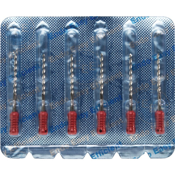 Zur sicheren Wurzelkanalaufbereitung mit drehend schabender Bewegung.EdelstahlISO 006-040 Vierkant-Querschnitt für höhere BruchsicherheitISO 045-140 Dreikant-Querschnitt für höhere SchneidleistungDeutliche Kennzeichnung des Instrumententyps und ISO Größe am GriffRöntgenopake KalibrierringeBruchsichere, hochflexible Stahllegierung mit hoher GefügereinheitDie inaktive Spitze führt das Instrument sicher im KanalMit vormontierten Silikon-Stoppern Blisterpackung 6 Bohrer 25 mm ISO 110