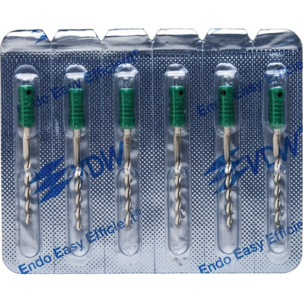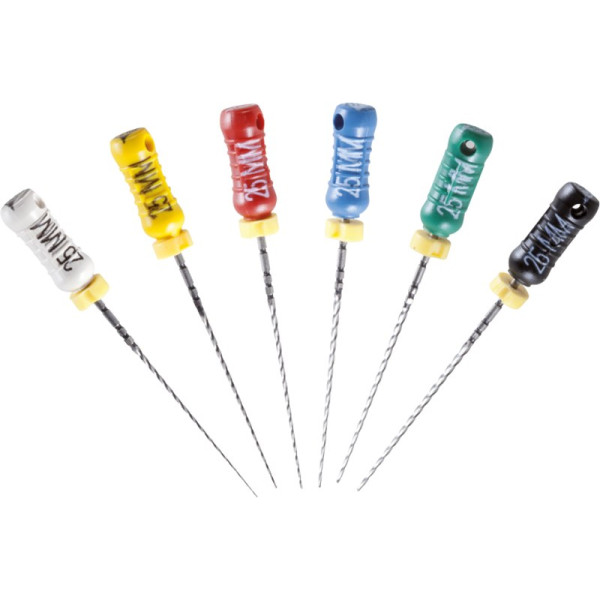 Zur sicheren Wurzelkanalaufbereitung mit drehend schabender Bewegung.EdelstahlISO 006-040 Vierkant-Querschnitt für höhere BruchsicherheitISO 045-140 Dreikant-Querschnitt für höhere SchneidleistungDeutliche Kennzeichnung des Instrumententyps und ISO Größe am GriffRöntgenopake KalibrierringeBruchsichere, hochflexible Stahllegierung mit hoher GefügereinheitDie inaktive Spitze führt das Instrument sicher im KanalMit vormontierten Silikon-Stoppern Blisterpackung 6 Bohrer 25 mm ISO 130