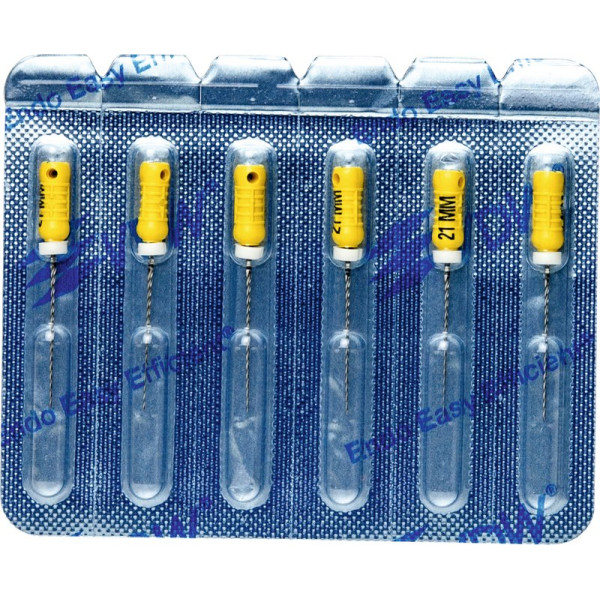 Zur sicheren Wurzelkanalaufbereitung mit drehend schabender Bewegung.EdelstahlISO 006-040 Vierkant-Querschnitt für höhere BruchsicherheitISO 045-140 Dreikant-Querschnitt für höhere SchneidleistungDeutliche Kennzeichnung des Instrumententyps und ISO Größe am GriffRöntgenopake KalibrierringeBruchsichere, hochflexible Stahllegierung mit hoher GefügereinheitDie inaktive Spitze führt das Instrument sicher im KanalMit vormontierten Silikon-Stoppern Blisterpackung 6 Bohrer 21 mm ISO 020