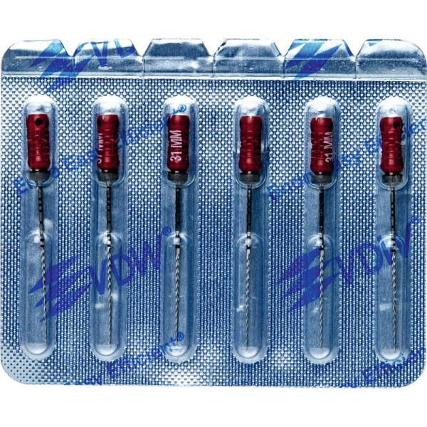 Zur sicheren Wurzelkanalaufbereitung mit drehend schabender Bewegung.EdelstahlISO 006-040 Vierkant-Querschnitt für höhere BruchsicherheitISO 045-140 Dreikant-Querschnitt für höhere SchneidleistungDeutliche Kennzeichnung des Instrumententyps und ISO Größe am GriffRöntgenopake KalibrierringeBruchsichere, hochflexible Stahllegierung mit hoher GefügereinheitDie inaktive Spitze führt das Instrument sicher im KanalMit vormontierten Silikon-Stoppern Blisterpackung 6 Bohrer 31 mm ISO 025