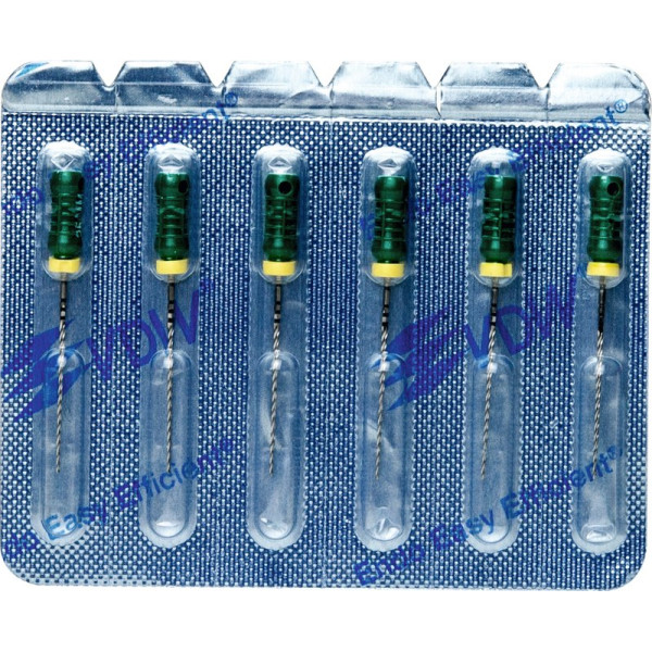 Zur sicheren Wurzelkanalaufbereitung mit drehend schabender Bewegung.EdelstahlISO 006-040 Vierkant-Querschnitt für höhere BruchsicherheitISO 045-140 Dreikant-Querschnitt für höhere SchneidleistungDeutliche Kennzeichnung des Instrumententyps und ISO Größe am GriffRöntgenopake KalibrierringeBruchsichere, hochflexible Stahllegierung mit hoher GefügereinheitDie inaktive Spitze führt das Instrument sicher im KanalMit vormontierten Silikon-Stoppern Blisterpackung 6 Bohrer 25 mm ISO 035