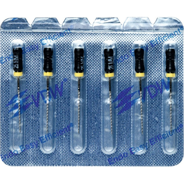 Zur sicheren Wurzelkanalaufbereitung mit drehend schabender Bewegung.EdelstahlISO 006-040 Vierkant-Querschnitt für höhere BruchsicherheitISO 045-140 Dreikant-Querschnitt für höhere SchneidleistungDeutliche Kennzeichnung des Instrumententyps und ISO Größe am GriffRöntgenopake KalibrierringeBruchsichere, hochflexible Stahllegierung mit hoher GefügereinheitDie inaktive Spitze führt das Instrument sicher im KanalMit vormontierten Silikon-Stoppern Blisterpackung 6 Bohrer 25 mm ISO 040
