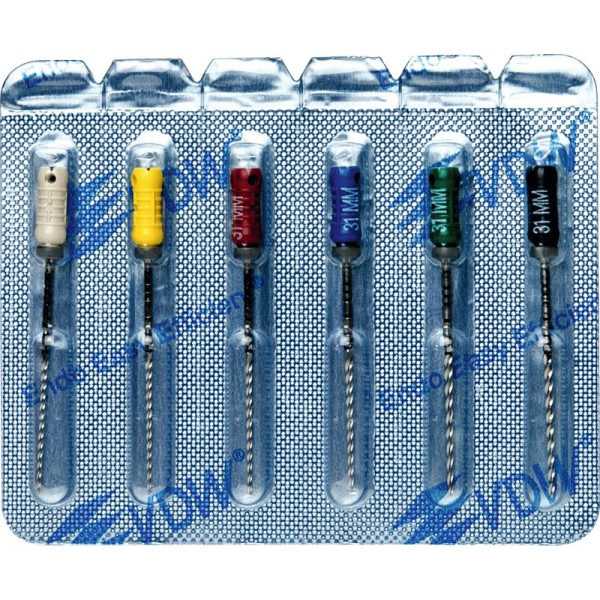 Zur sicheren Wurzelkanalaufbereitung mit drehend schabender Bewegung.EdelstahlISO 006-040 Vierkant-Querschnitt für höhere BruchsicherheitISO 045-140 Dreikant-Querschnitt für höhere SchneidleistungDeutliche Kennzeichnung des Instrumententyps und ISO Größe am GriffRöntgenopake KalibrierringeBruchsichere, hochflexible Stahllegierung mit hoher GefügereinheitDie inaktive Spitze führt das Instrument sicher im KanalMit vormontierten Silikon-Stoppern Sortiment 6 Bohrer 31 mm ISO 045-080