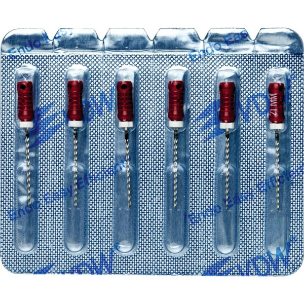 Zur sicheren Wurzelkanalaufbereitung mit drehend schabender Bewegung.EdelstahlISO 006-040 Vierkant-Querschnitt für höhere BruchsicherheitISO 045-140 Dreikant-Querschnitt für höhere SchneidleistungDeutliche Kennzeichnung des Instrumententyps und ISO Größe am GriffRöntgenopake KalibrierringeBruchsichere, hochflexible Stahllegierung mit hoher GefügereinheitDie inaktive Spitze führt das Instrument sicher im KanalMit vormontierten Silikon-Stoppern Blisterpackung 6 Bohrer 21 mm ISO 055