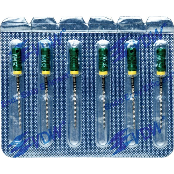 Zur sicheren Wurzelkanalaufbereitung mit drehend schabender Bewegung.EdelstahlISO 006-040 Vierkant-Querschnitt für höhere BruchsicherheitISO 045-140 Dreikant-Querschnitt für höhere SchneidleistungDeutliche Kennzeichnung des Instrumententyps und ISO Größe am GriffRöntgenopake KalibrierringeBruchsichere, hochflexible Stahllegierung mit hoher GefügereinheitDie inaktive Spitze führt das Instrument sicher im KanalMit vormontierten Silikon-Stoppern Blisterpackung 6 Bohrer 25 mm ISO 070