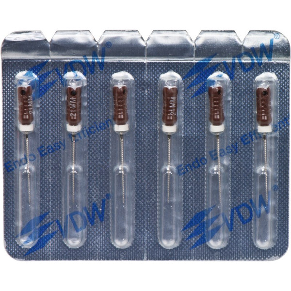 Für alle Aufbereitungstechniken in drehend feilender Bewegung.EdelstahlISO 006-25 Vierkant-Querschnitt für höhere BruchsicherheitISO 030-140 Dreikant-Querschnitt für höhere SchneidleistungDeutliche Kennzeichnung des Instrumententyps und ISO Größe am GriffRöntgenopake KalibrierringeBruchsichere, hochflexible Stahllegierung mit hoher GefügereinheitDie inaktive Spitze führt das Instrument sicher im KanalMit vormontierten Silikon-Stoppern Blisterpackung 6 Feilen 21mm ISO 017