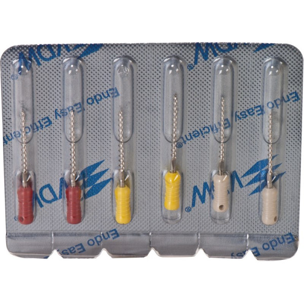 Für alle Aufbereitungstechniken in drehend feilender Bewegung.EdelstahlISO 006-25 Vierkant-Querschnitt für höhere BruchsicherheitISO 030-140 Dreikant-Querschnitt für höhere SchneidleistungDeutliche Kennzeichnung des Instrumententyps und ISO Größe am GriffRöntgenopake KalibrierringeBruchsichere, hochflexible Stahllegierung mit hoher GefügereinheitDie inaktive Spitze führt das Instrument sicher im KanalMit vormontierten Silikon-Stoppern Sortiment 6 Feilen 21 mm ISO 090-110