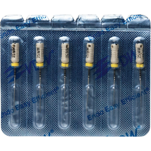 Für alle Aufbereitungstechniken in drehend feilender Bewegung.EdelstahlISO 006-25 Vierkant-Querschnitt für höhere BruchsicherheitISO 030-140 Dreikant-Querschnitt für höhere SchneidleistungDeutliche Kennzeichnung des Instrumententyps und ISO Größe am GriffRöntgenopake KalibrierringeBruchsichere, hochflexible Stahllegierung mit hoher GefügereinheitDie inaktive Spitze führt das Instrument sicher im KanalMit vormontierten Silikon-Stoppern Blisterpackung 6 Feilen 25 mm ISO 015