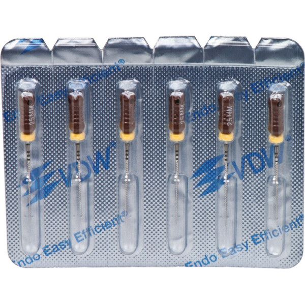 Für alle Aufbereitungstechniken in drehend feilender Bewegung.EdelstahlISO 006-25 Vierkant-Querschnitt für höhere BruchsicherheitISO 030-140 Dreikant-Querschnitt für höhere SchneidleistungDeutliche Kennzeichnung des Instrumententyps und ISO Größe am GriffRöntgenopake KalibrierringeBruchsichere, hochflexible Stahllegierung mit hoher GefügereinheitDie inaktive Spitze führt das Instrument sicher im KanalMit vormontierten Silikon-Stoppern Blisterpackung 6 Feilen 25 mm ISO 017
