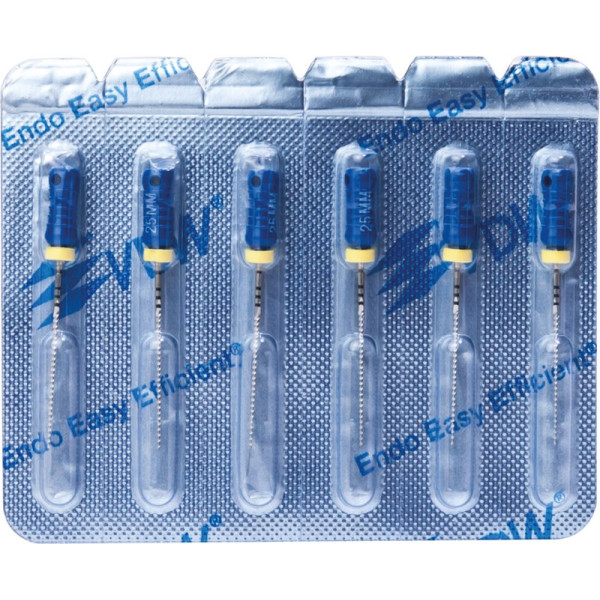 Für alle Aufbereitungstechniken in drehend feilender Bewegung.EdelstahlISO 006-25 Vierkant-Querschnitt für höhere BruchsicherheitISO 030-140 Dreikant-Querschnitt für höhere SchneidleistungDeutliche Kennzeichnung des Instrumententyps und ISO Größe am GriffRöntgenopake KalibrierringeBruchsichere, hochflexible Stahllegierung mit hoher GefügereinheitDie inaktive Spitze führt das Instrument sicher im KanalMit vormontierten Silikon-Stoppern Blisterpackung 6 Feilen 25 mm ISO 030