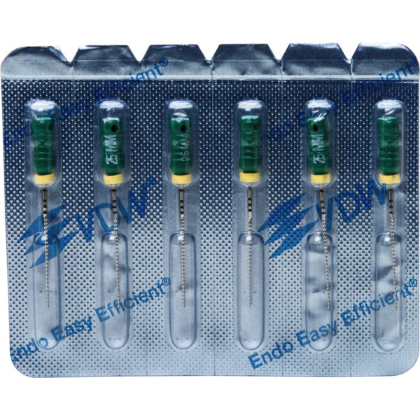 Für alle Aufbereitungstechniken in drehend feilender Bewegung.EdelstahlISO 006-25 Vierkant-Querschnitt für höhere BruchsicherheitISO 030-140 Dreikant-Querschnitt für höhere SchneidleistungDeutliche Kennzeichnung des Instrumententyps und ISO Größe am GriffRöntgenopake KalibrierringeBruchsichere, hochflexible Stahllegierung mit hoher GefügereinheitDie inaktive Spitze führt das Instrument sicher im KanalMit vormontierten Silikon-Stoppern Blisterpackung 6 Feilen 25 mm ISO 035