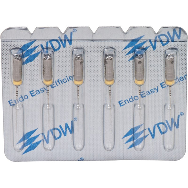 Für alle Aufbereitungstechniken in drehend feilender Bewegung.EdelstahlISO 006-25 Vierkant-Querschnitt für höhere BruchsicherheitISO 030-140 Dreikant-Querschnitt für höhere SchneidleistungDeutliche Kennzeichnung des Instrumententyps und ISO Größe am GriffRöntgenopake KalibrierringeBruchsichere, hochflexible Stahllegierung mit hoher GefügereinheitDie inaktive Spitze führt das Instrument sicher im KanalMit vormontierten Silikon-Stoppern Blisterpackung 6 Feilen 25 mm ISO 008
