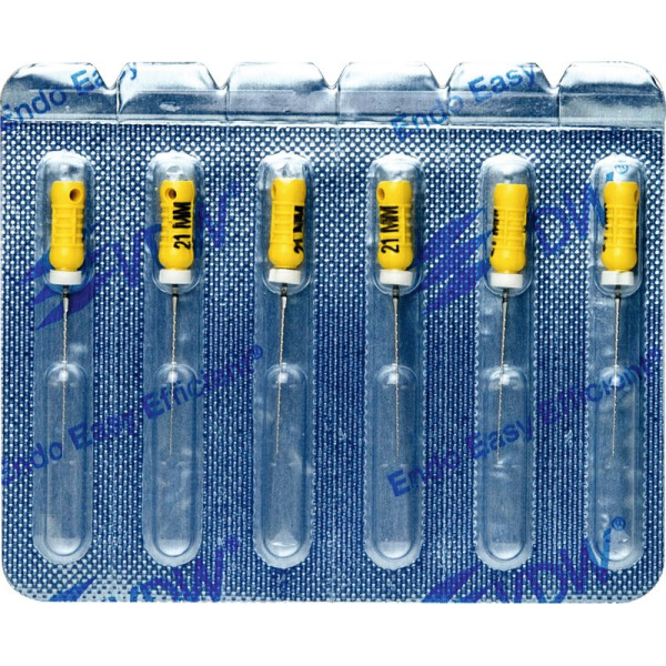Hocheffiziente Aufbereitung in feilender Zugbewegung.Hohe SchneidleistungBruchsichere, hochflexible Stahllegierung mit hoher GefügereinheitDie inaktive Spitze führt das Instrument sicher im KanalDeutliche Kennzeichnung des Instrumententyps und der ISO Größe am GriffRöntgenopake KalibrierringeZusätzlicher Längenaufdruck am GriffMit vormontierten Silikon-Stoppern Blisterpackung 6 Feilen 21 mm ISO 020