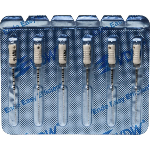 Hocheffiziente Aufbereitung in feilender Zugbewegung.Hohe SchneidleistungBruchsichere, hochflexible Stahllegierung mit hoher GefügereinheitDie inaktive Spitze führt das Instrument sicher im KanalDeutliche Kennzeichnung des Instrumententyps und der ISO Größe am GriffRöntgenopake KalibrierringeZusätzlicher Längenaufdruck am GriffMit vormontierten Silikon-Stoppern Blisterpackung 6 Feilen 31 mm ISO 045