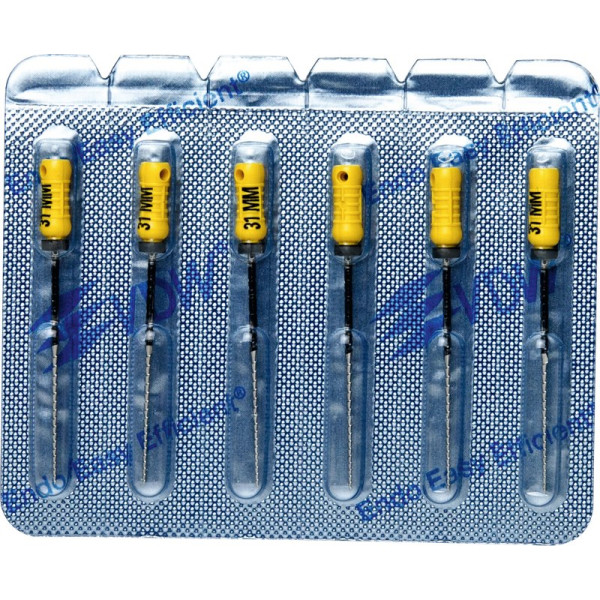 Hocheffiziente Aufbereitung in feilender Zugbewegung.Hohe SchneidleistungBruchsichere, hochflexible Stahllegierung mit hoher GefügereinheitDie inaktive Spitze führt das Instrument sicher im KanalDeutliche Kennzeichnung des Instrumententyps und der ISO Größe am GriffRöntgenopake KalibrierringeZusätzlicher Längenaufdruck am GriffMit vormontierten Silikon-Stoppern Blisterpackung 6 Feilen 31 mm ISO 050