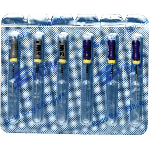 Hocheffiziente Aufbereitung in feilender Zugbewegung.Hohe SchneidleistungBruchsichere, hochflexible Stahllegierung mit hoher GefügereinheitDie inaktive Spitze führt das Instrument sicher im KanalDeutliche Kennzeichnung des Instrumententyps und der ISO Größe am GriffRöntgenopake KalibrierringeZusätzlicher Längenaufdruck am GriffMit vormontierten Silikon-Stoppern Sortiment 6 Feilen 25 mm ISO 008-010