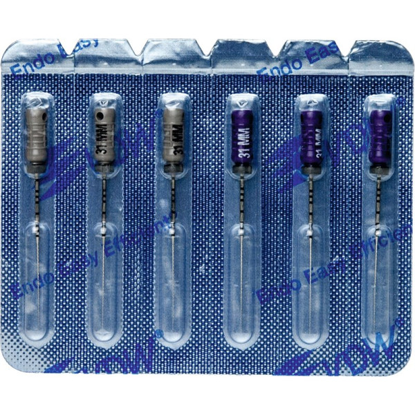 Hocheffiziente Aufbereitung in feilender Zugbewegung.Hohe SchneidleistungBruchsichere, hochflexible Stahllegierung mit hoher GefügereinheitDie inaktive Spitze führt das Instrument sicher im KanalDeutliche Kennzeichnung des Instrumententyps und der ISO Größe am GriffRöntgenopake KalibrierringeZusätzlicher Längenaufdruck am GriffMit vormontierten Silikon-Stoppern Sortiment 6 Feilen 31 mm ISO 008-010
