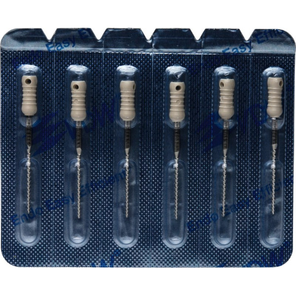 Hocheffiziente Aufbereitung in feilender Zugbewegung.Hohe SchneidleistungBruchsichere, hochflexible Stahllegierung mit hoher GefügereinheitDie inaktive Spitze führt das Instrument sicher im KanalDeutliche Kennzeichnung des Instrumententyps und der ISO Größe am GriffRöntgenopake KalibrierringeZusätzlicher Längenaufdruck am GriffMit vormontierten Silikon-Stoppern Blisterpackung 6 Feilen 25 mm ISO 090