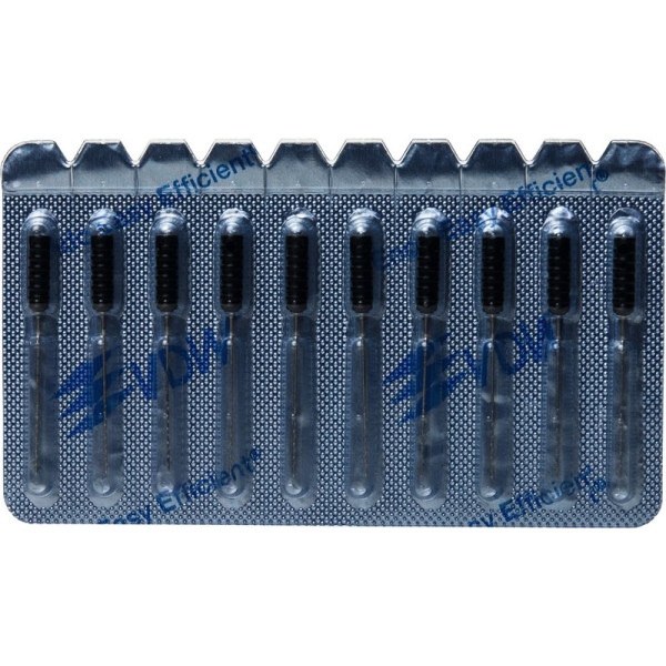 Zur effektiven Exstirpation des gesamten Pulpagewebes. Flexible Zähnchen sind spiralförmig um den konischen Kern angeordnet. Ihre Größe entspricht 1/2 des Kerndurchmessers. Sie sind so stabil, dass sie im Wurzelkanal bei sachgemäßem Gebrauch nicht abbrechen können. Edelstahl, CC-Cord Griff. Blisterpackung 10 Nadeln Größe C