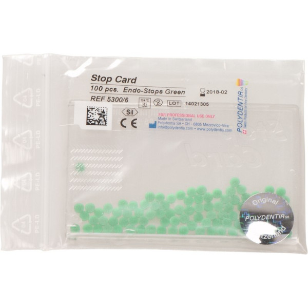 Stop Card + Dispenser, (3,5 x 1 mm), Endo stops, zöld, Szilikon, 100 darab